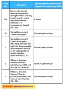 - মহিলা প্রার্থী এবং তফসিলি জাতি (SC), তফসিলি উপজাতি (ST), বেঞ্চমার্ক প্রতিবন্ধী ব্যক্তি (PwBD) এবং প্রাক্তন সৈনিক (ESM) সংরক্ষণের জন্য যোগ্য প্রার্থীদের ফি প্রদান থেকে অব্যাহতি দেওয়া হয়েছে।